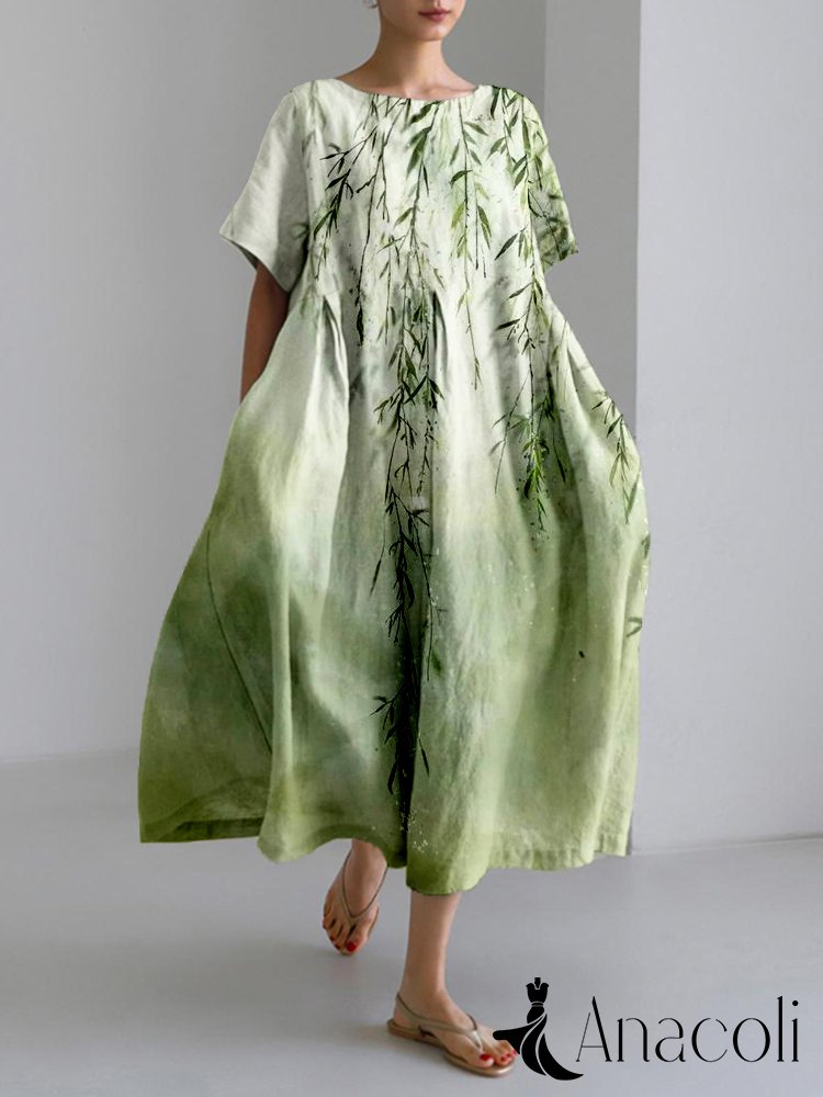 Bamboo Art Pattern Linen Blend Comfy Maxi Dress