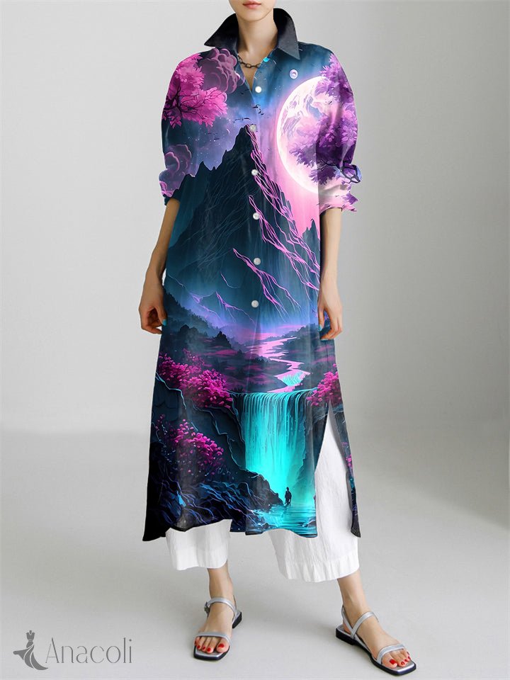 Cherry Blossom Japanese Art Print Long Sleeve Slit Shirt Dress