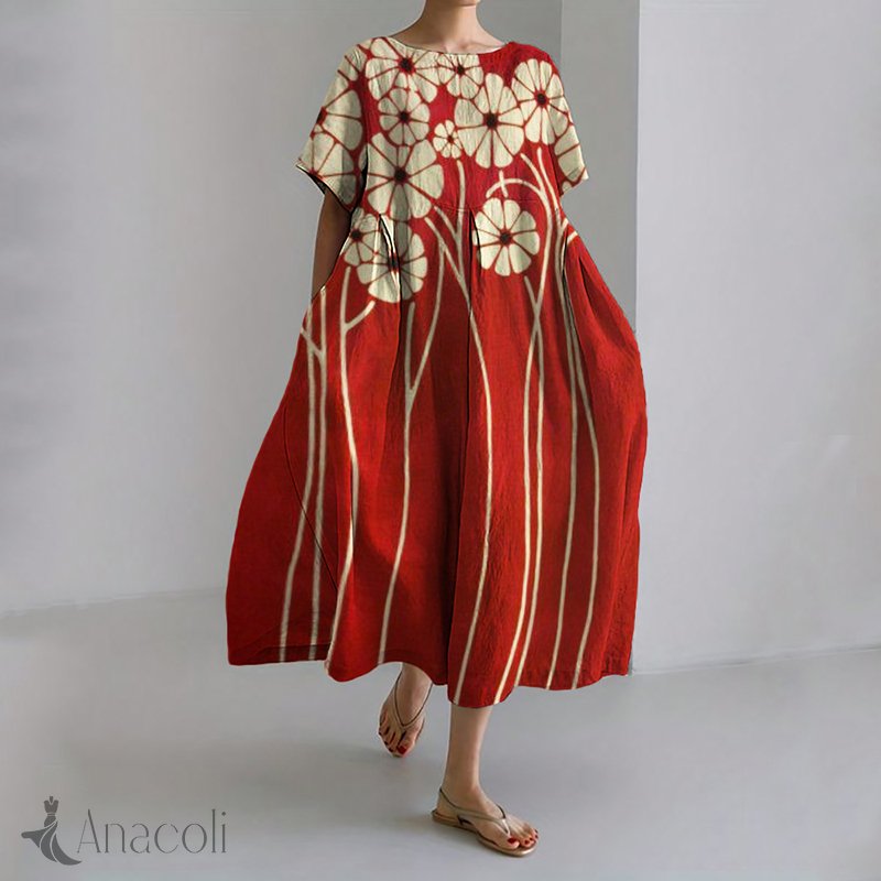 Classy Flowers Japanese Art Linen Blend Maxi Dress