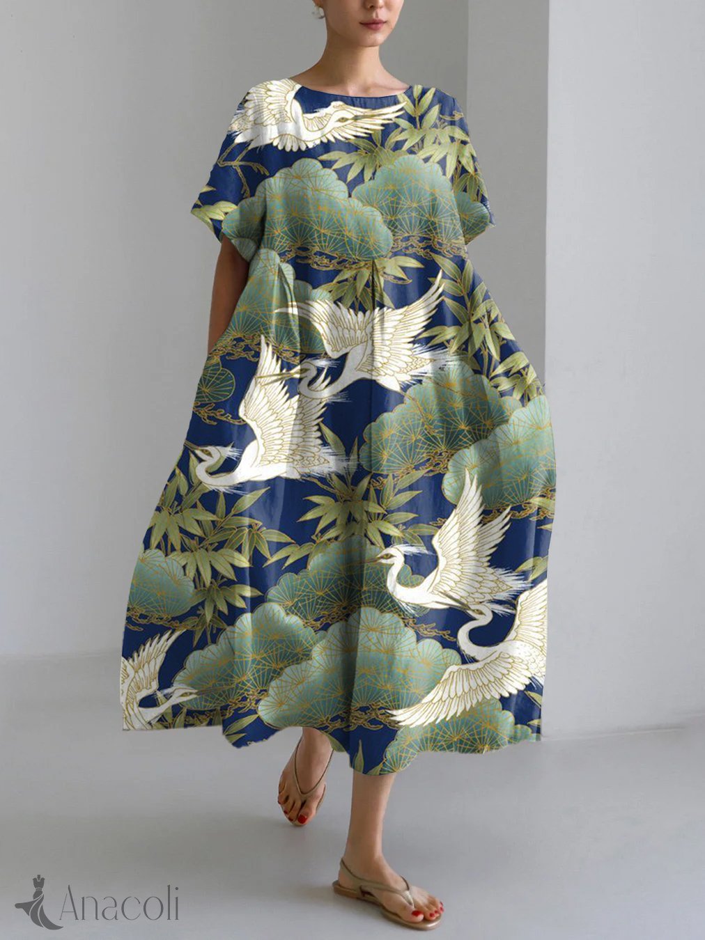 Crane & Pine Japanese Pattern Linen Blend Maxi Dress