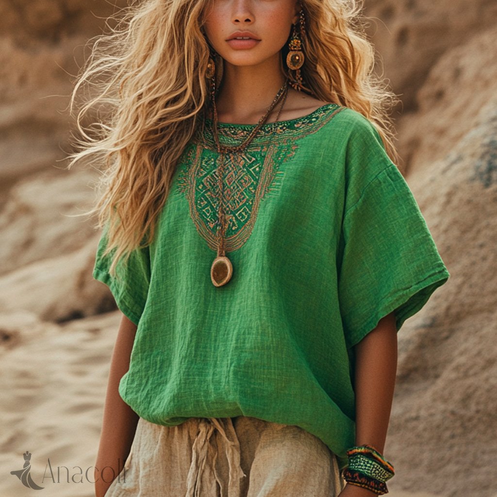 Desert Style Holiday Bohemian Vintage Linen Casual Top