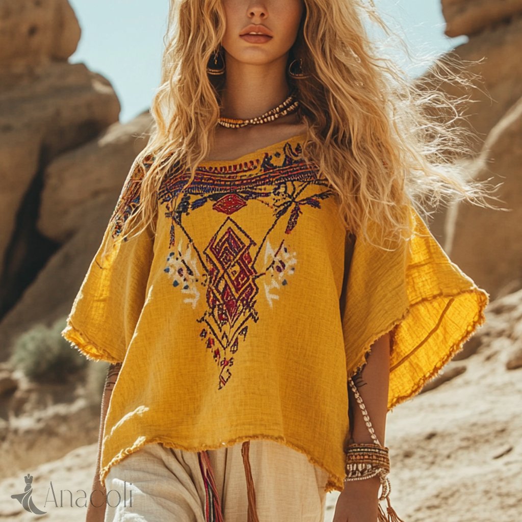 Desert Style Holiday Bohemian Vintage Linen Casual Top