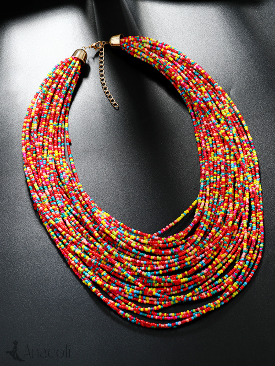Exaggerated multi-layered ethnic style short necklace