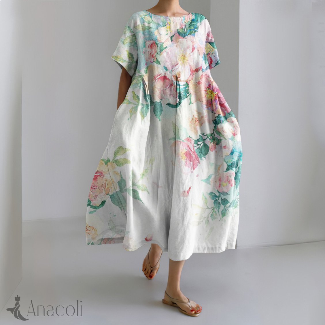 Floral Print Round Neck Loose Midi Dress
