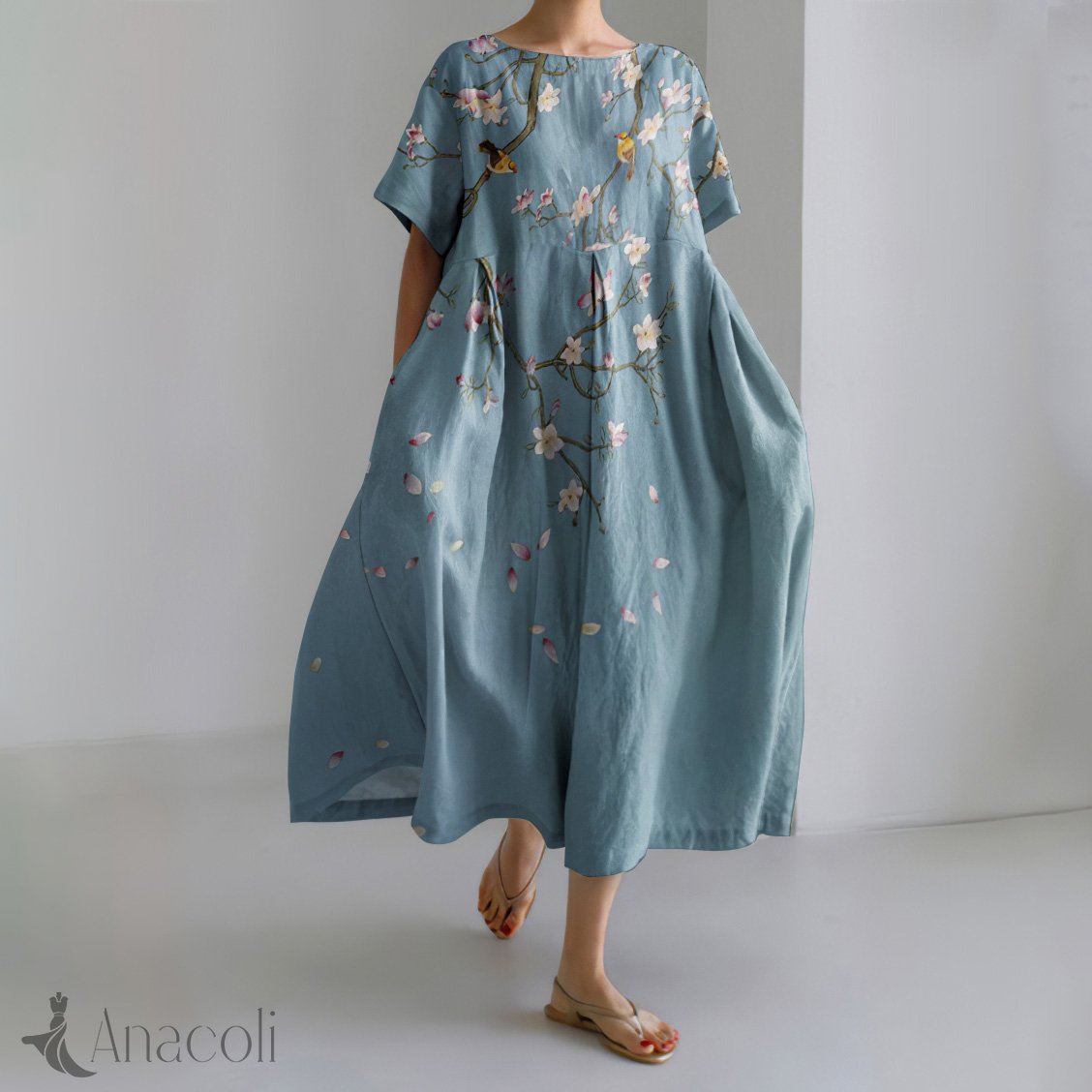 Wearshes Floral Print Short Sleeve Casual Midi Dress