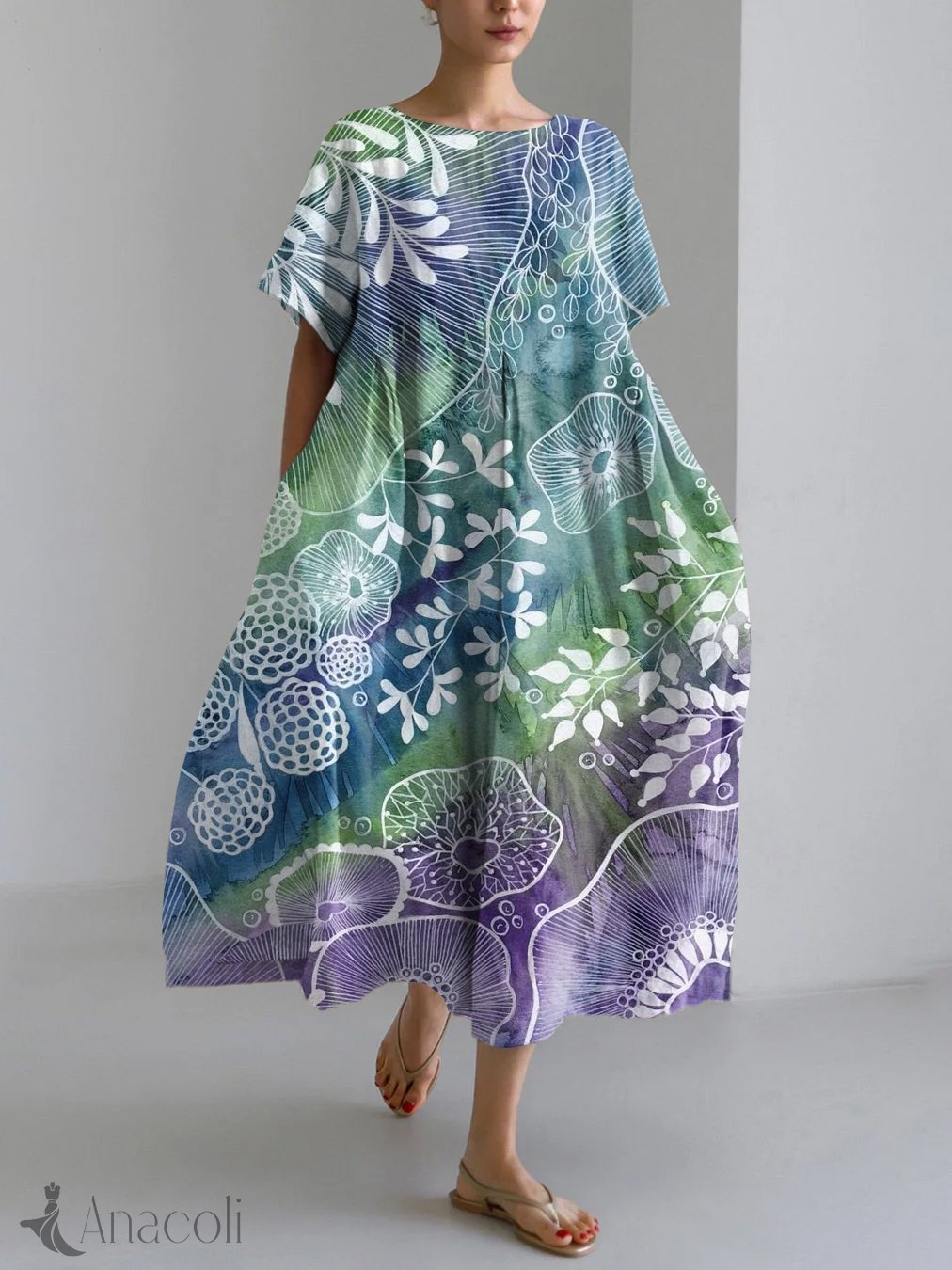 Retro Circle Abstract Art Print Linen Blend Maxi Dress