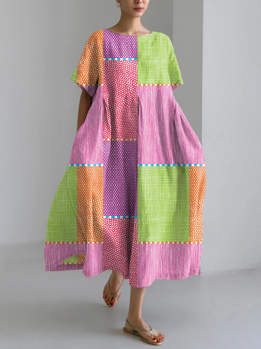 Vintage Japanese Art Print Linen Blend Maxi Dress