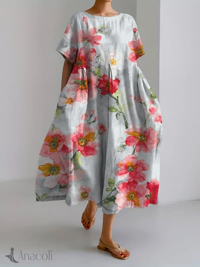 Women's Retro Botanical Floral Design Printed Casual Loose Dress