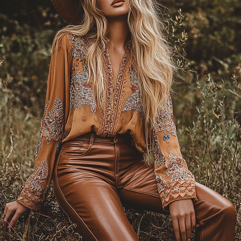 Women's West Cowboy Bohemian Elegance Ethnic Patterns Lace Crop Cardigan Top